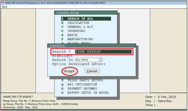 Firstly, Go to Masters >> Marg Setups >> Control Room. Press Enter.
